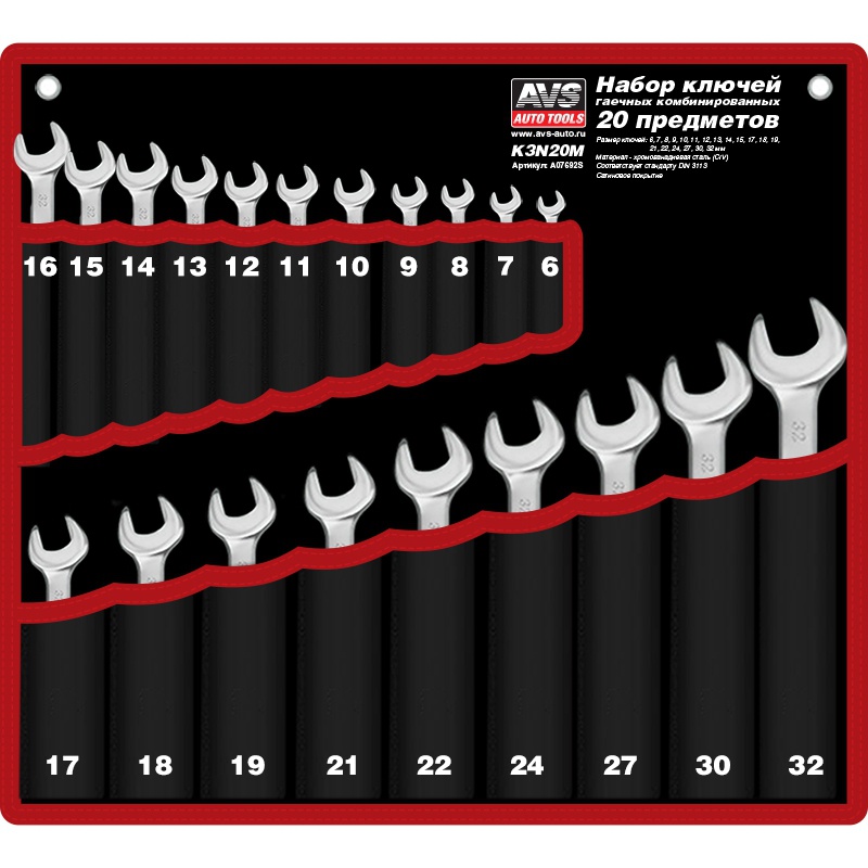 Набор ключей гаечных комбинированных в сумке (6-32 мм) (20 предметов) AVS K3N20M
