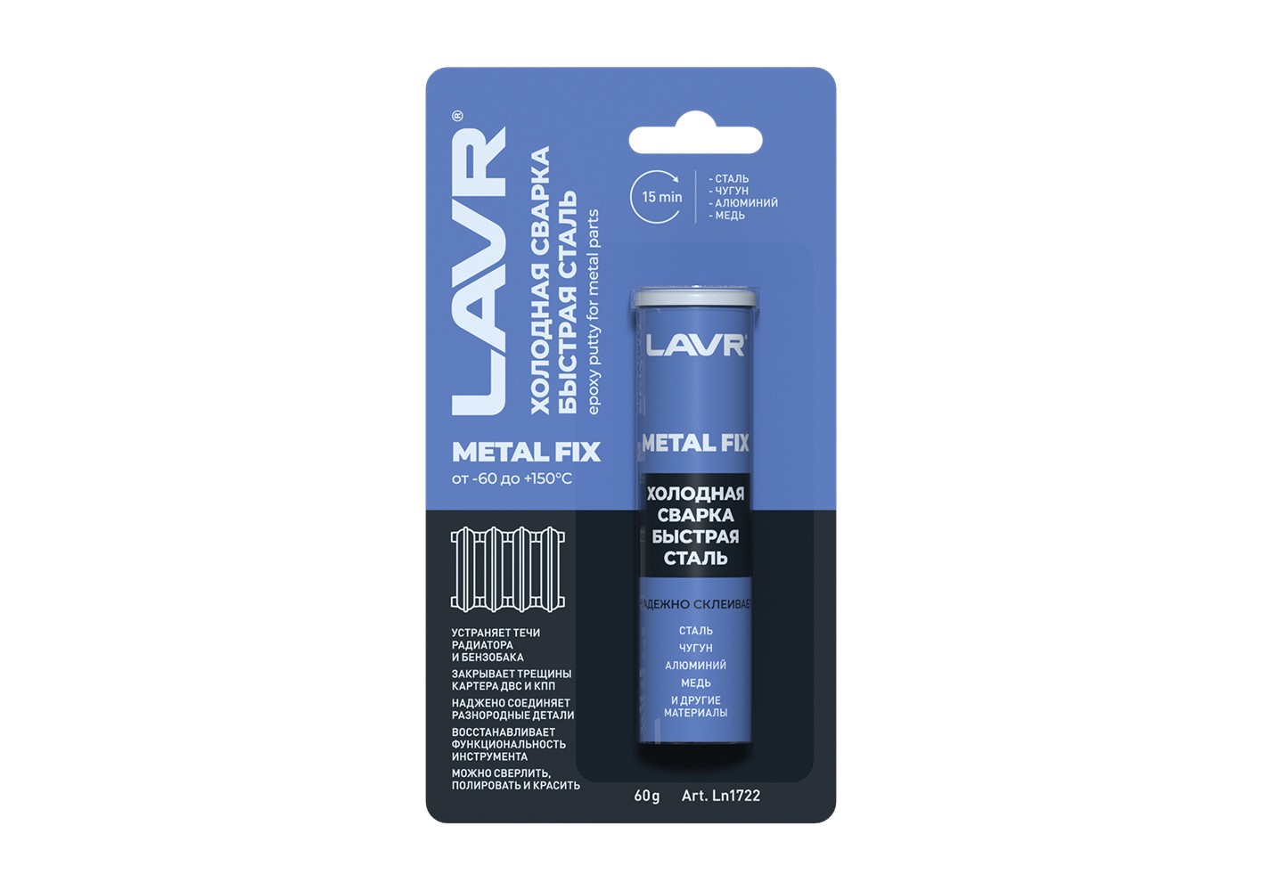 Холодная сварка LAVR «Быстрая сталь» MetalFIX 60г