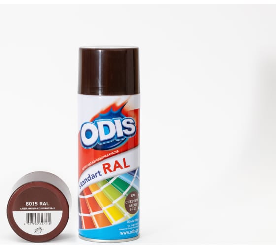 ODIS spray paint Standart RAL – высококачественная акриловая аэрозольная краска для внутренних и наружных работ. Применяется для окрашивания металлических, деревянных, керамических, бетонных, каменных, стеклянных и большинства пластиковых поверхностей.