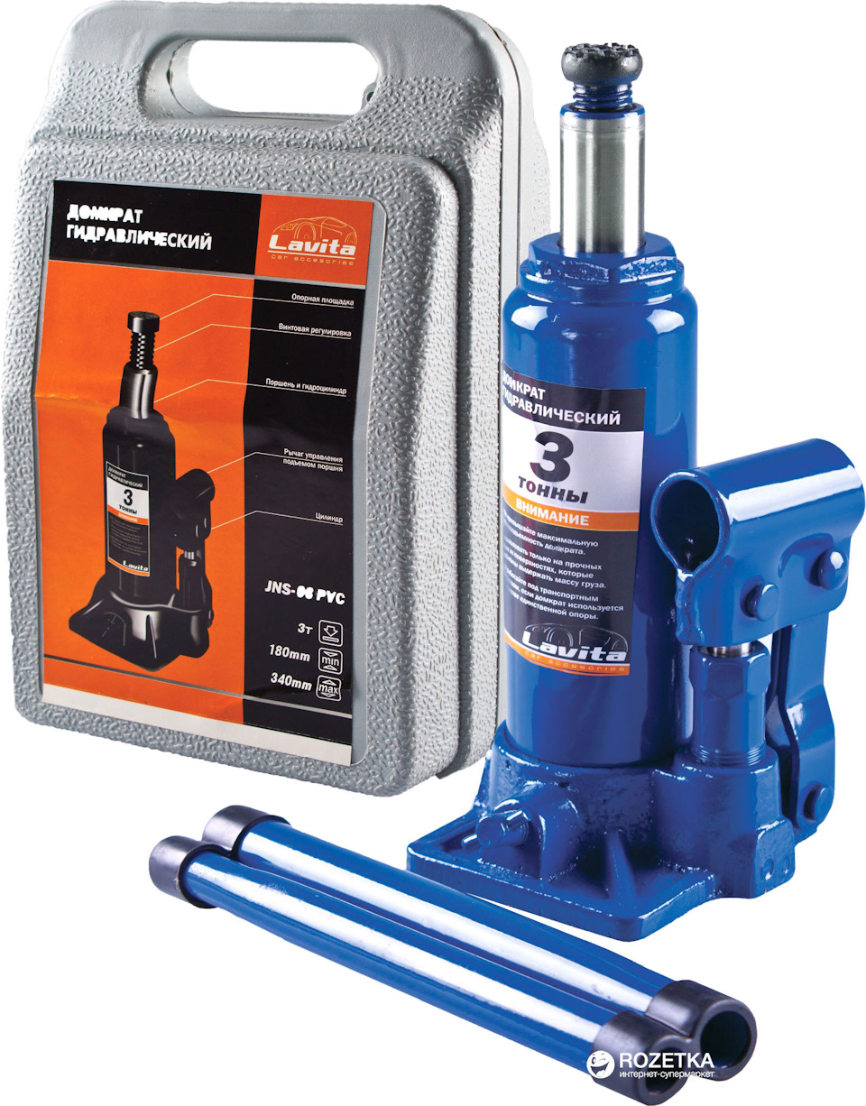 Домкрат гидравлический бутылочный 3т Lavita 180-340 мм, пластиковый кейс LA JNS-03PVC