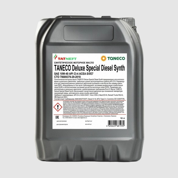 Масло TANECO моторное DeLuxe Special Diesel Synth 10W-40 CI-4,E4 10л.