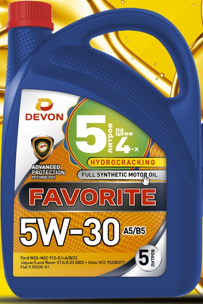 Масло Devon МОТОРНОЕ FAVORITE 5w-40 SN,A3/B4 (синт.) 5л.