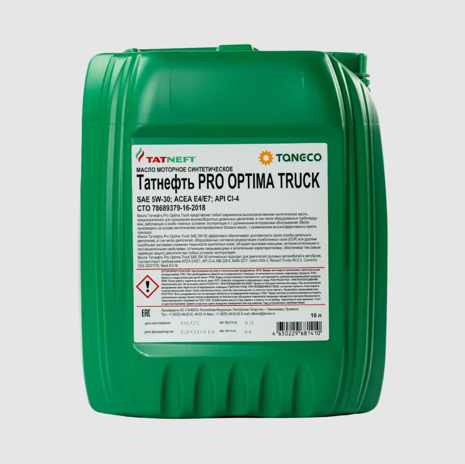 Масло Татнефть моторное PRO OPTIMA TRUCK 5W-30 CI-4,E4/E7 10л.